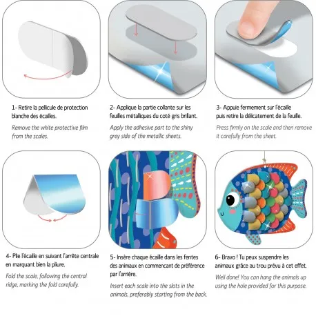 Un coffret sur le thème des fonds marins, idéal pour créer de jolis animaux en 3D avec des écailles à métalliser. La brillance des écailles donne vie aux personnages aquatiques ! Une activité créative et ludique qui stimule la dextérité et la motricité fine des plus jeunes.